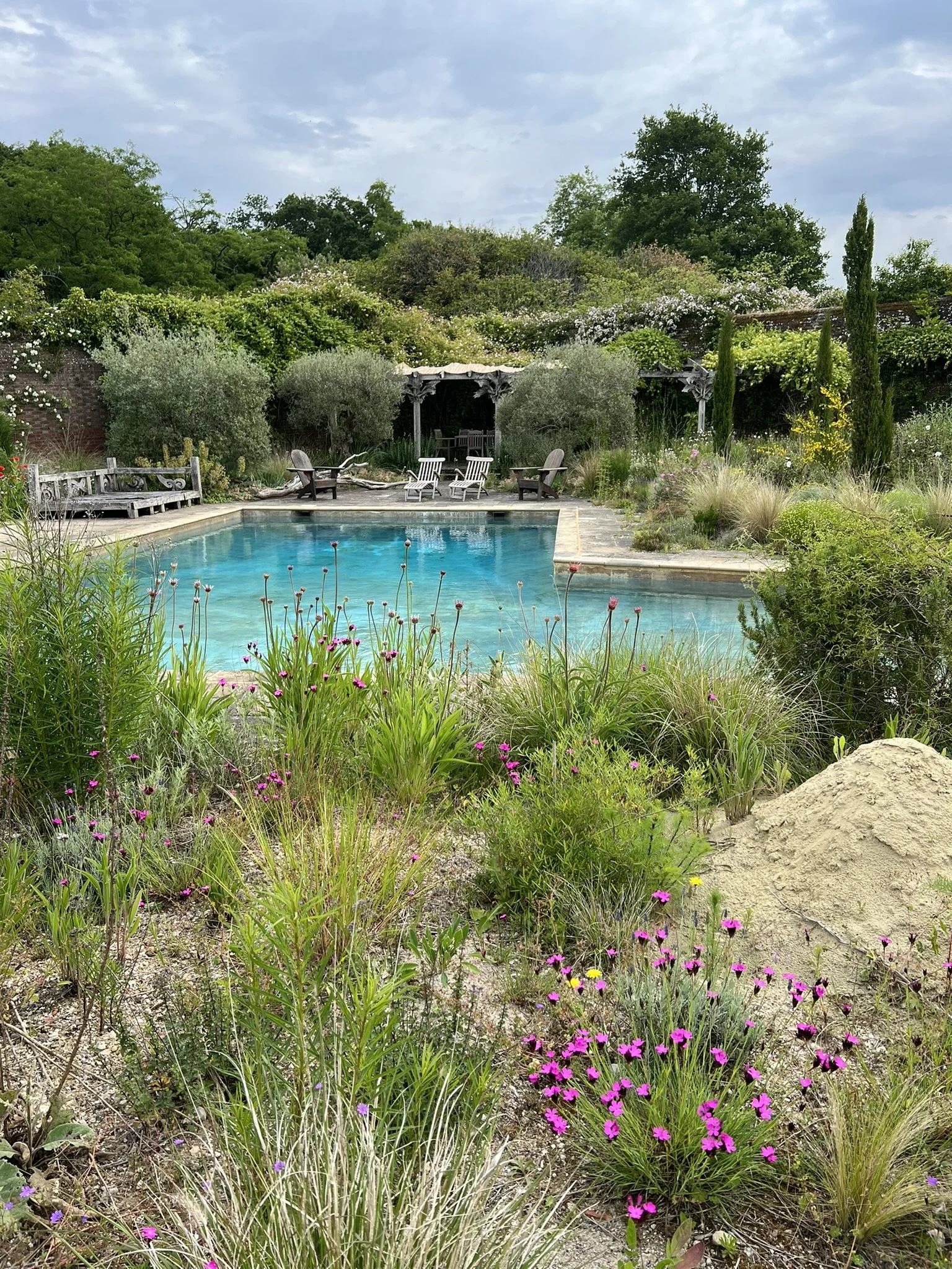 The rear garden is about to be landscaped and should be planted up in Autumn 2025, it has a decked area, a natural pool, a ravine, gravel garden and a productive kitchen garden. The clients have been a joy to work with and I’m looking forward to planting it up!