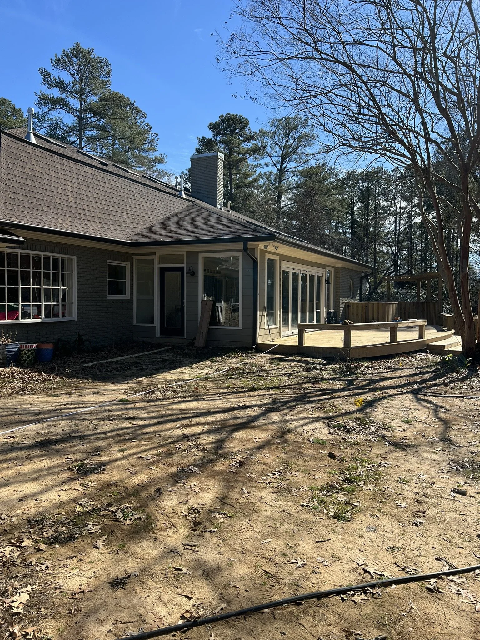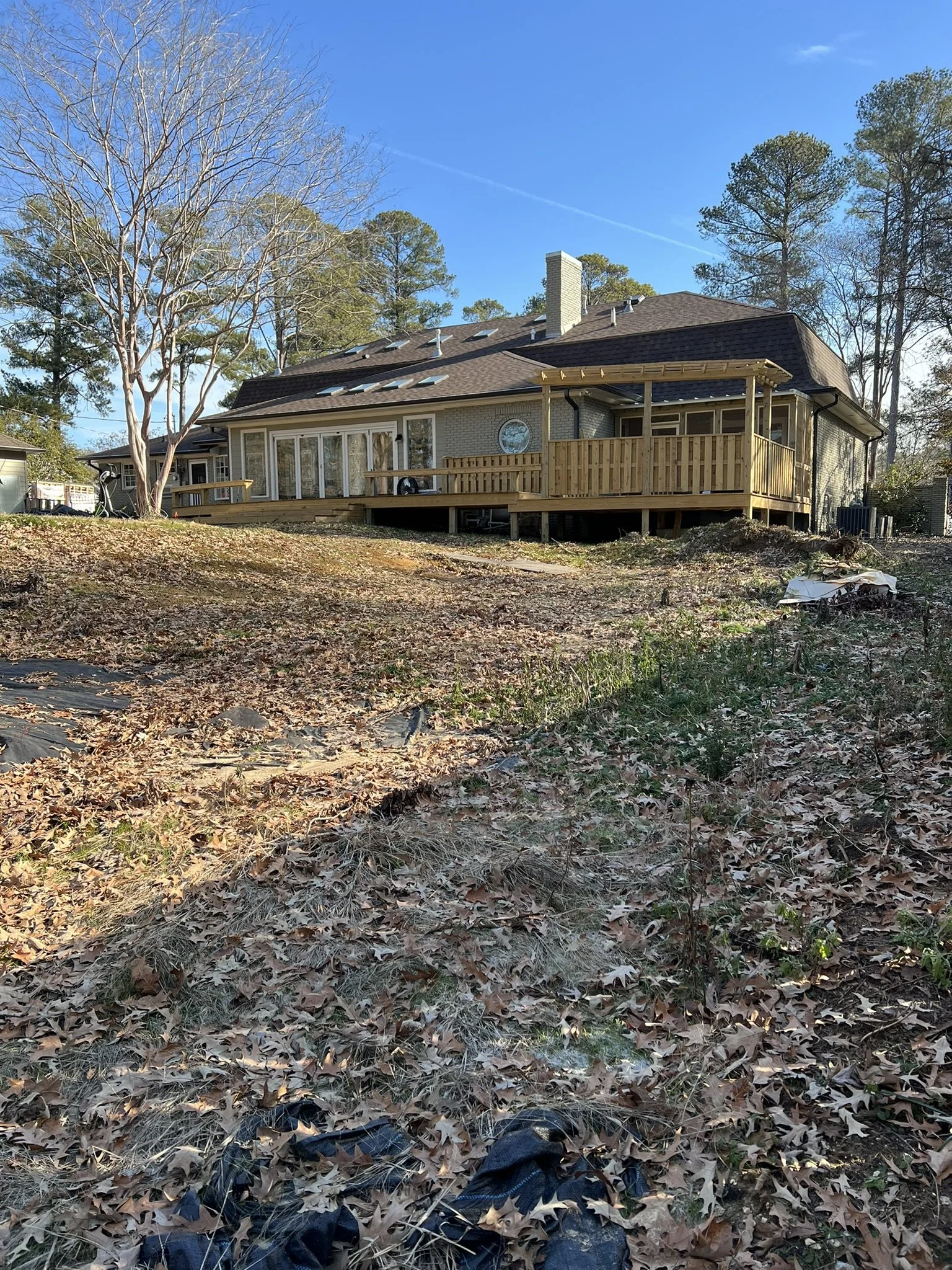 The rear garden includes a large deck, an enclosed porch, a swimming pool, a ravine leading to a natural pool with swamp planting, a woodland area, a productive kitchen garden with a new greenhouse and planting right up to the house to merge indoors and outdoors. Existing Crepe Myrtle Trees provide shade. Summers are hot and humid, requiring heat-tolerant plants. By June 25, the front garden was newly planted, and the rear garden landscaping was about to begin. I look forward to seeing it all completed.